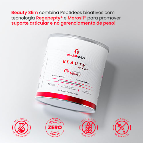 Beauty Slim oferece suporte com colágeno hidrolisado, peptídeo bioativos de alta absorção.