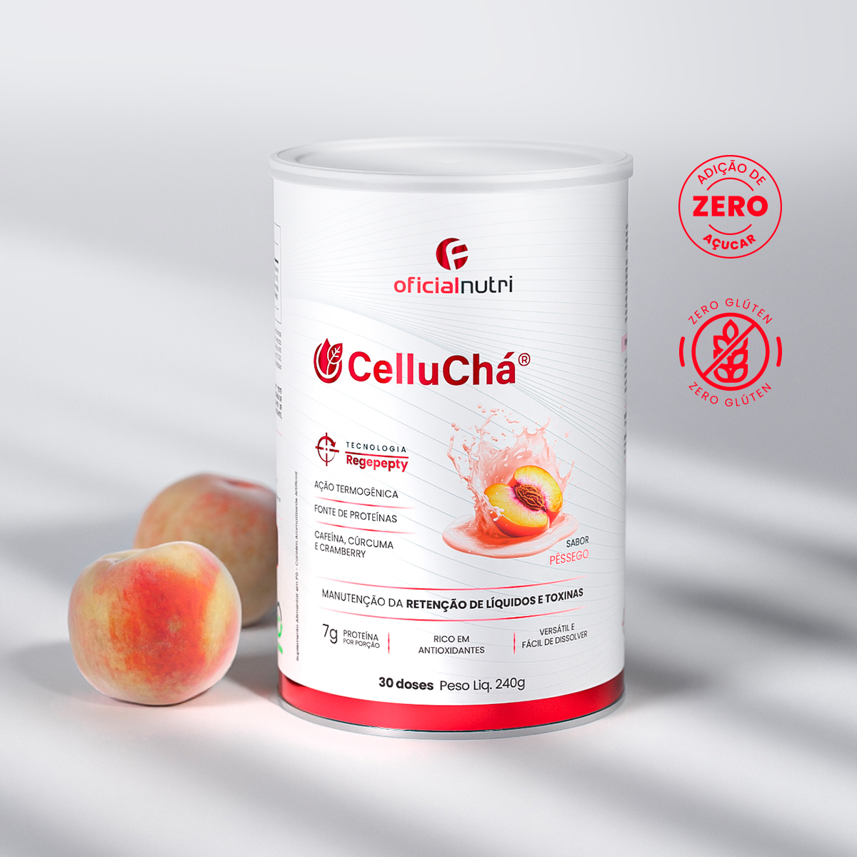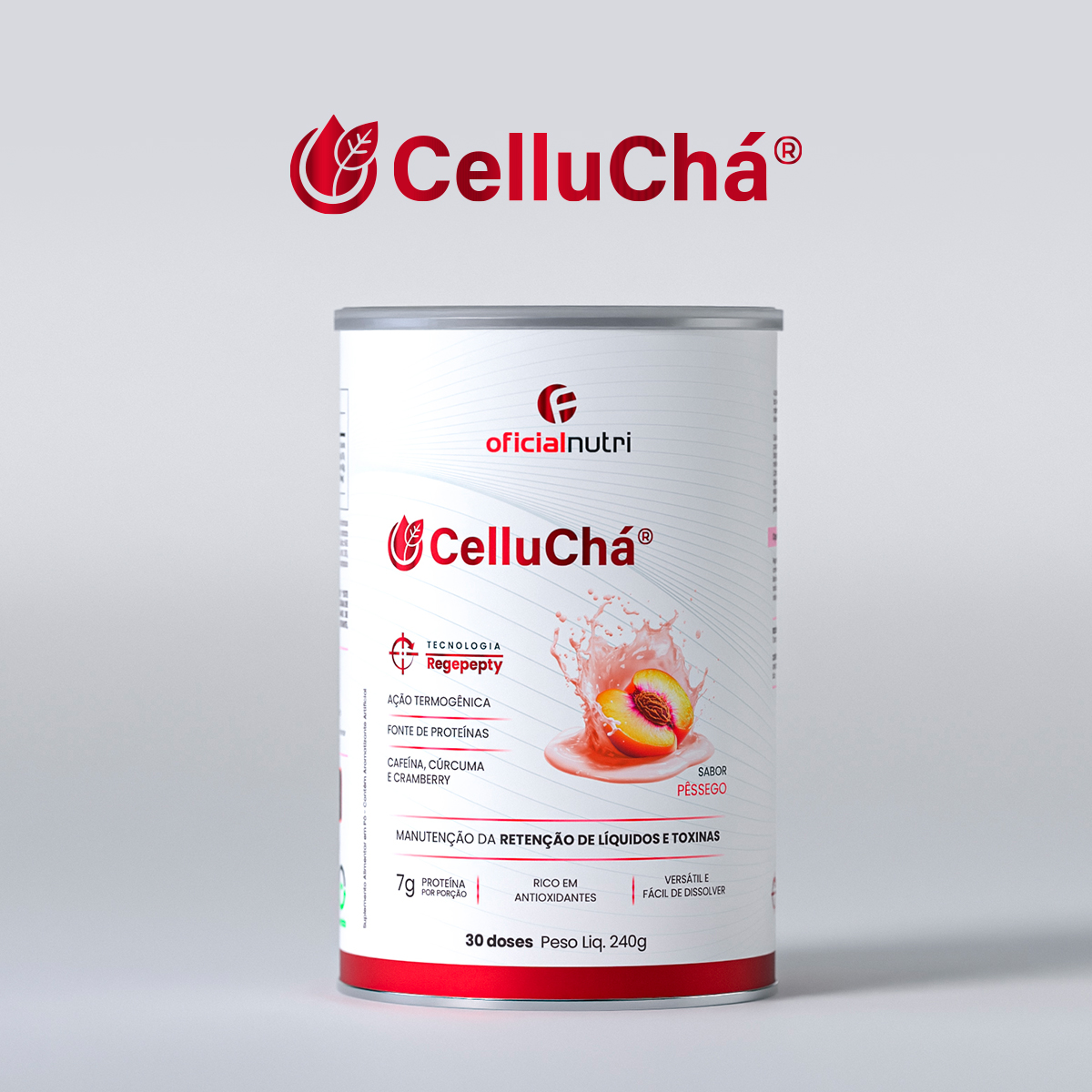 Celluchá: Reduza a retenção de líquidos e melhore a aparência da pele de forma leve e saborosa com o Celluchá sabor pêssego.